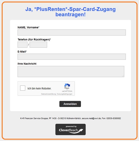 *PLUSrente*- Zugang anfordern : >>> Hier unser vorschriftsmäßig SSL-verschlüsseltes ANFRAGE- Formular: [ TIPP! - Vergrössert beim Anklicken selbständig! - ] ![]() # Keine Angst! Auch wir mögen KEIN(en) SPAM! - Wir versenden nur sehr wenige und sehr sorgsam ausgewählte NEWs ! # Keine Angst! Wir behandeln & stellen >Ihre DATEN SO SICHER wie unsere eigenen< !